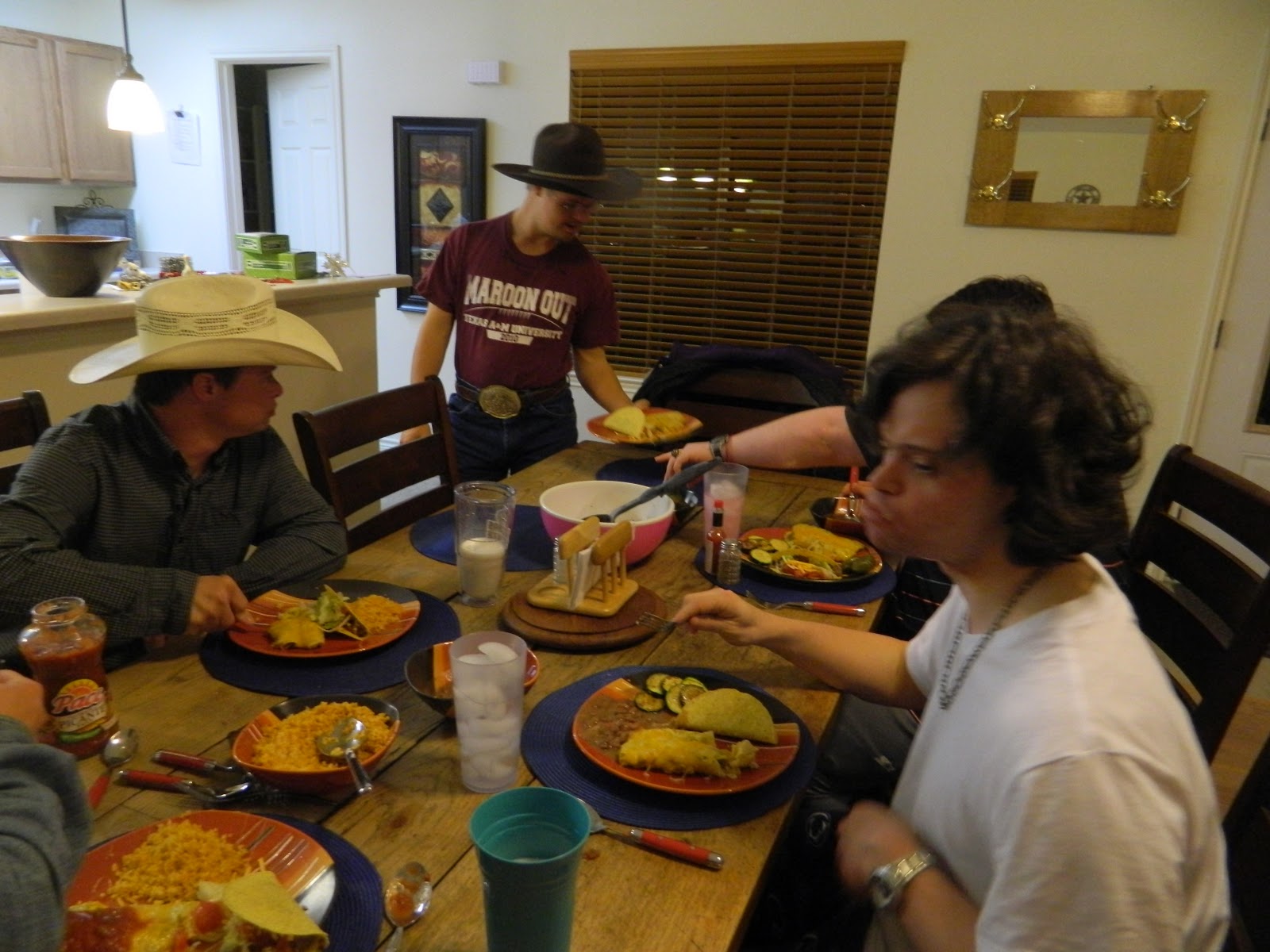 | Jay, right, enjoys a Tex-Mex dinner with his buddies |