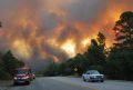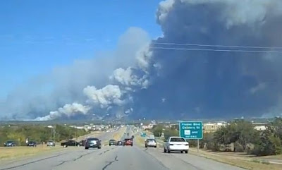 | The Bastrop County fires as seen from Hwy 71 (Photo by HippieChickenFarmer) |
