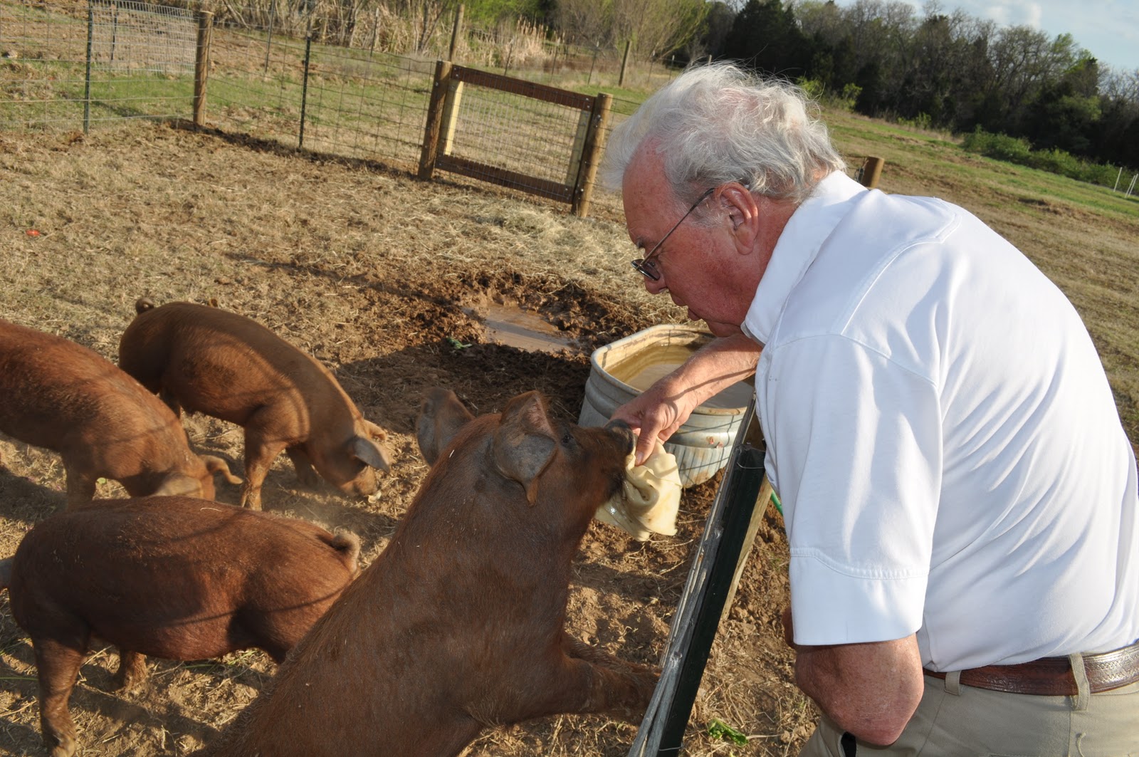 | Jerry feeds tortillas, a favorite, to the pigs last spring |