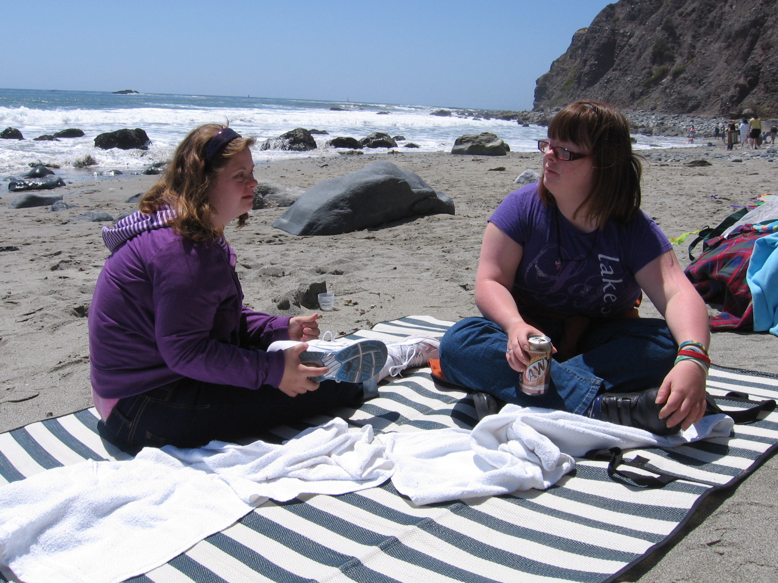 This is an enchanted cove, nestled at the bottom of vertical cliffs against which pelicans fly in formation, casting their shadows like something out of Jurassaic Park. Kelly and Alaina sunbathed while we searched for anemones and critters among the beautiful rocks.