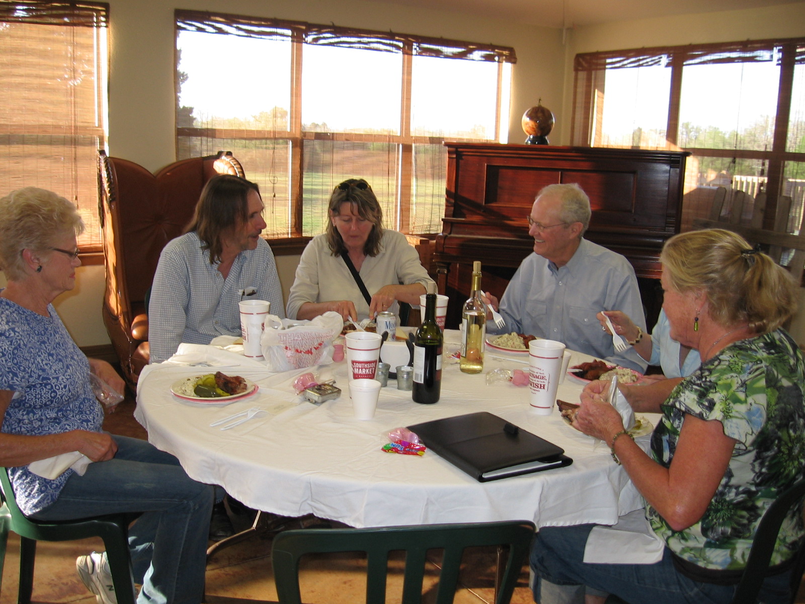 We’d worried a bit about the menu, being as it was a Friday in Lent, but Bishop McCarthy had granted the Catholics among us a dispensation to enjoy the chicken, sausage, brisket, and pork ribs (and did we ever!)
