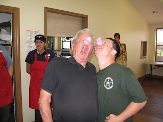 Quickly donning a pig nose, he headed straight for the Pavilion where the Ranchers were working on their newsletter class. Creeping up to an outside window, he was quickly spied as laughter and whoops of delight broke out among the ranks.