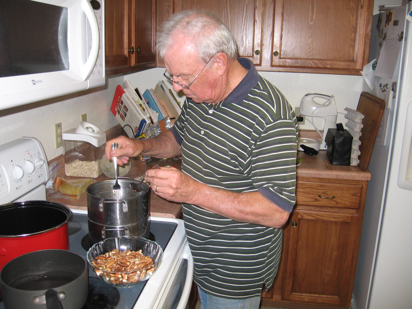 | Jerry making chocolate covered pecans |