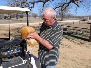 | Jerry holds hen just killed by hawk |