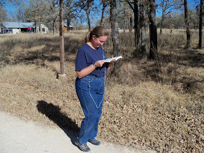 | Natalie moseys along while engaged in a book |