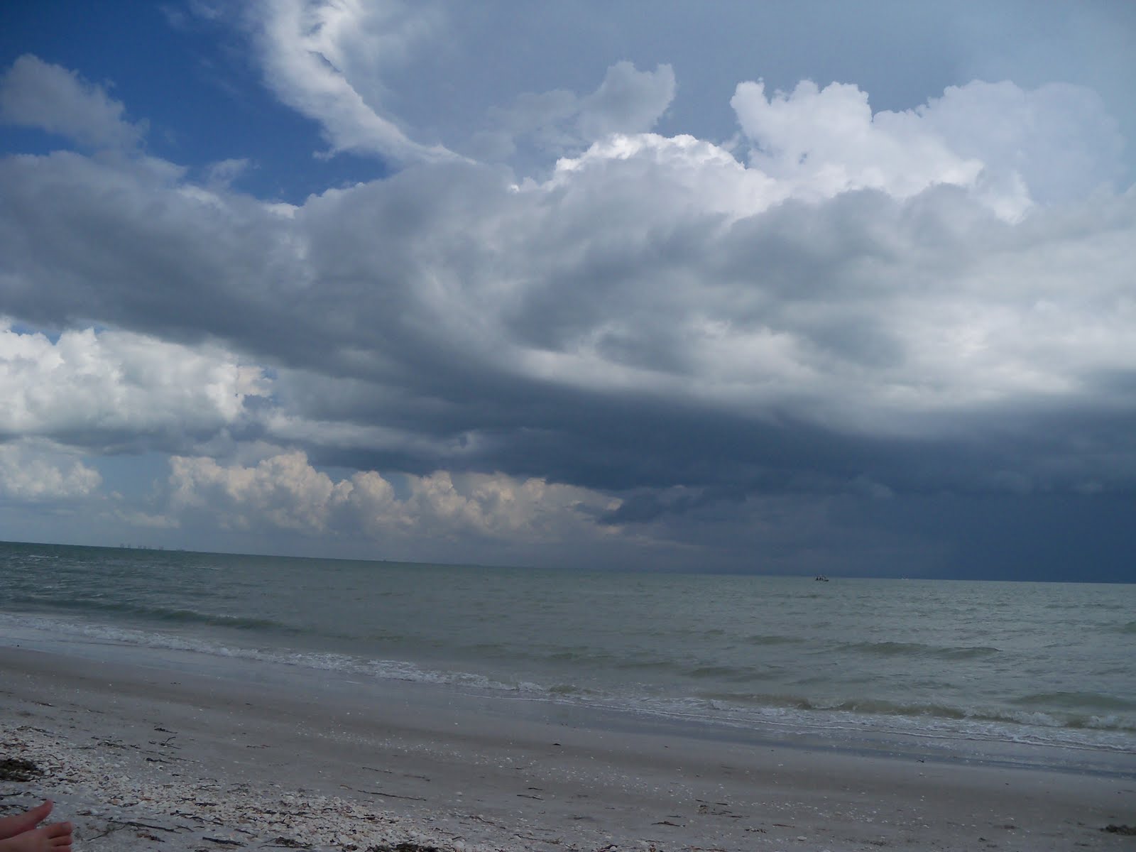 Other advice warned us against staying on the beach with nearby thunderheads, which we also foolishly did until I pointed out to Carolyn that they looked very like the clouds that excite the storm-chasers we watch on TV. To appease me, we took down our umbrellas and headed for home.