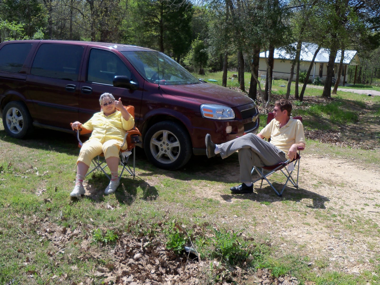 I peered through the trees and saw folks gathered around the retaining wall of Barnabas House. Curious as to what they were up to, I headed over thataway.