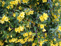I stop by my favorite red ant bed, but they’re not up and about yet, so I come on back to Benedict House. The Carolina jasmine has completely outdone itself with blooms, so I take one last picture, slough off my sneakers, set up the coffee, and start the day.