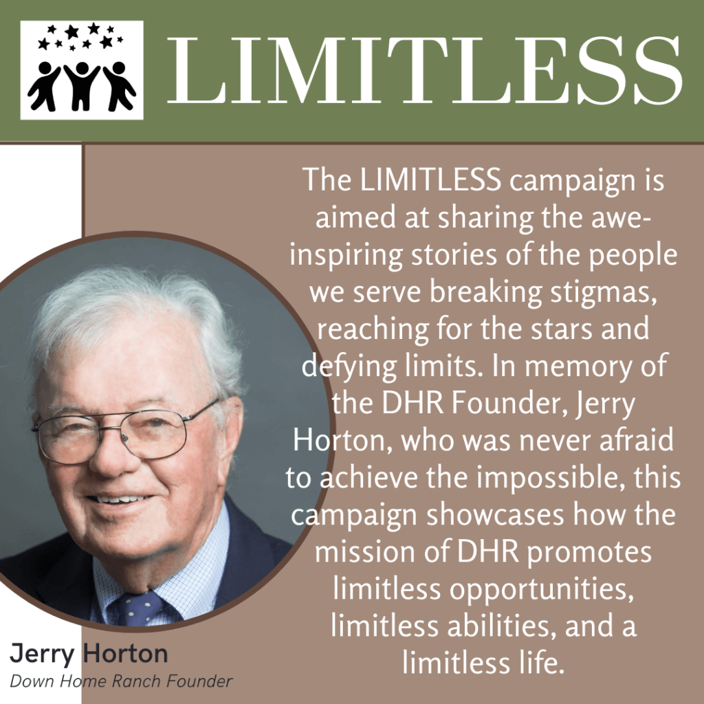 In the upcoming year, we look forward to sharing inspiring stories of individuals with intellectual and developmental disabilities breaking stigmas. Stories of independence and strength. Stories of Ranchers embracing the freedom to pursue opportunities and living life without limits. Triumphant stories that can only be told because of the determination, dedication and passion of one remarkable man: DHR Founder, Jerry Horton.
