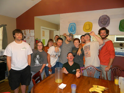 | Jay, Kristen, Kelly, Sterling, Kyle, Jason, Tom (seated), Ashley, Nick, Travis, and Tom were among the guests at Ashley’s Breakfast Club Farewell Breakfast today |