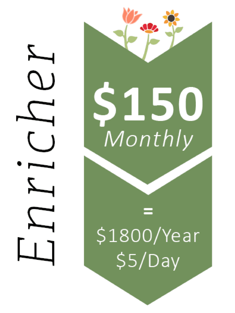 This flexible giving option meets your budget on your terms. Whether you are able to give $19.89 or $150 a month, your gift will be used 100% with the mission in mind.